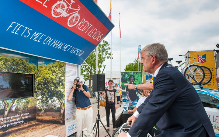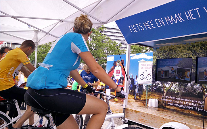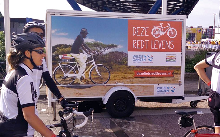 Rondom de Tour de France ontwierpen we een speciale tourwagen met aanhanger, die heel het land doortrekt. Mensen kunnen bij deze wagen virtueel de route door Kenia fietsen en zo op een speelse manier kennismaken met dit project van Wilde Ganzen.